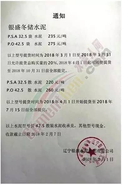 银盛冬储水泥通知