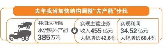 在发展质量改善的同时,效益也稳步提升。全年,水泥行业实现主营业务收入455亿元,大幅增长42.6%。实现利润34.52亿元,增长68.4%。