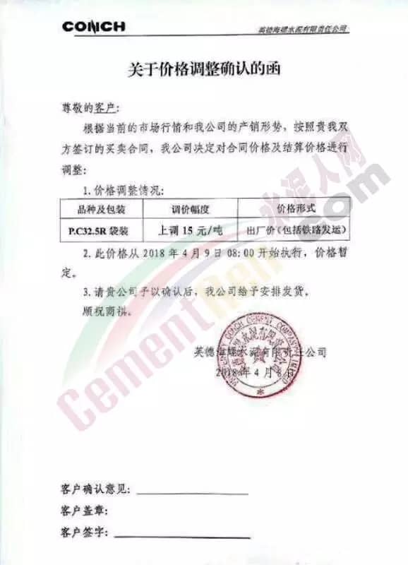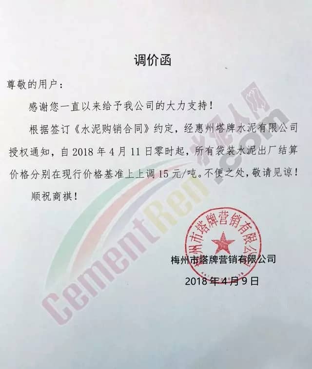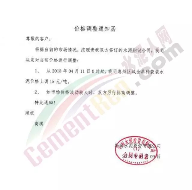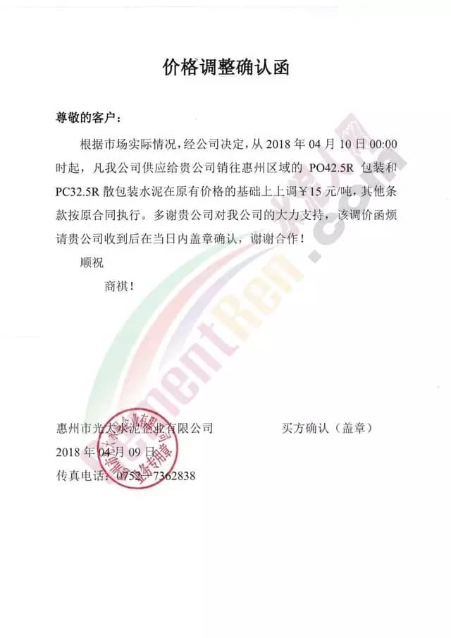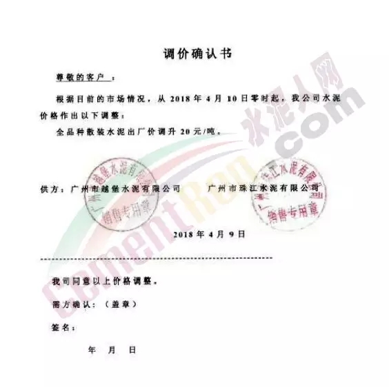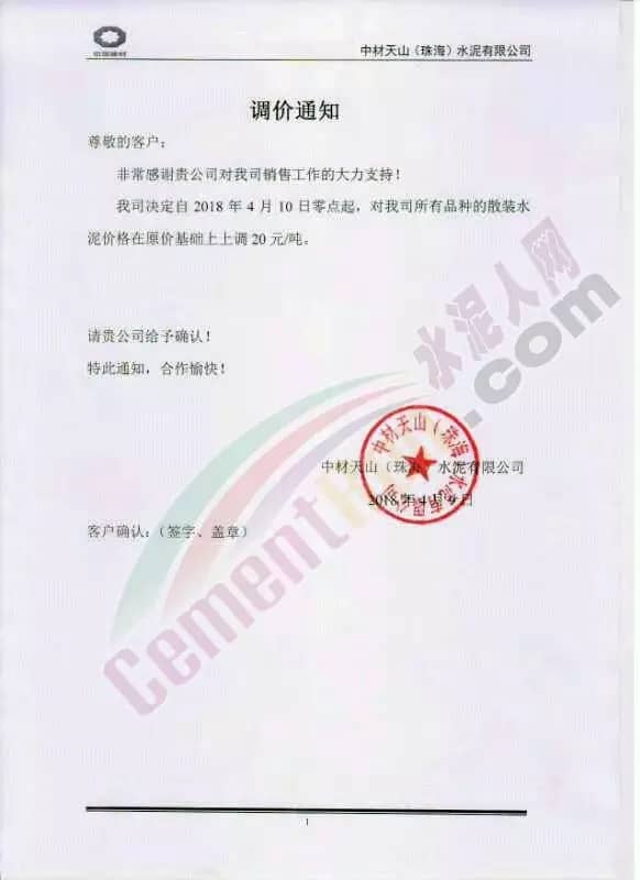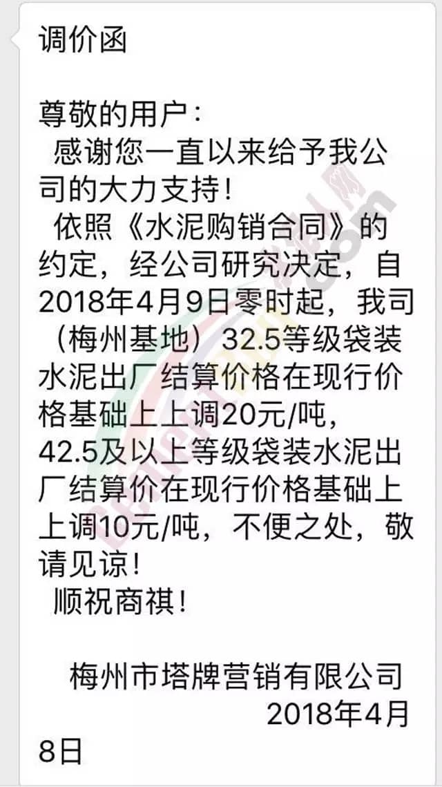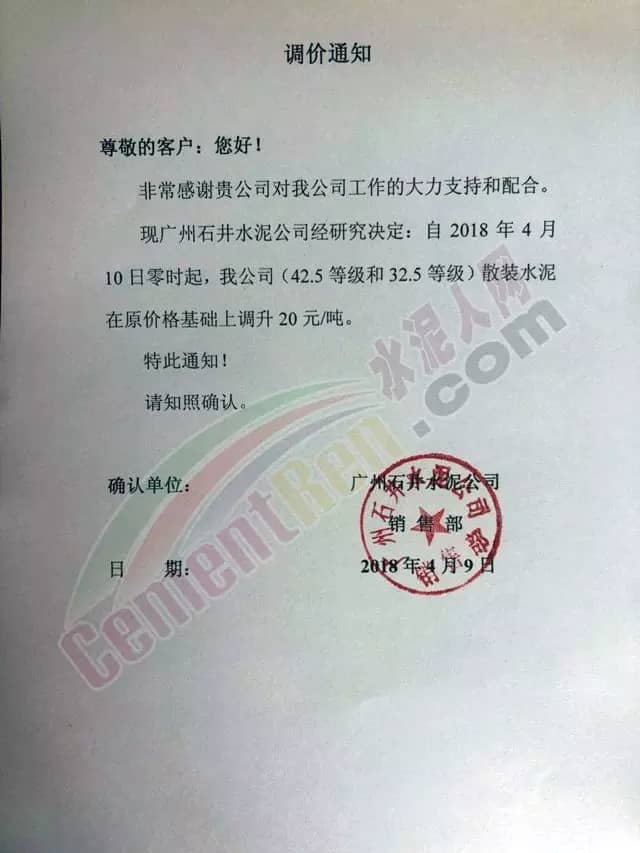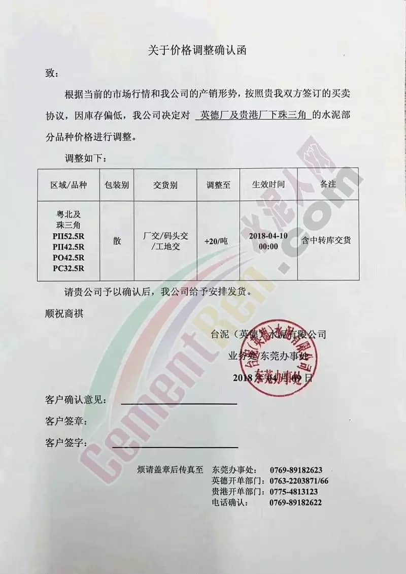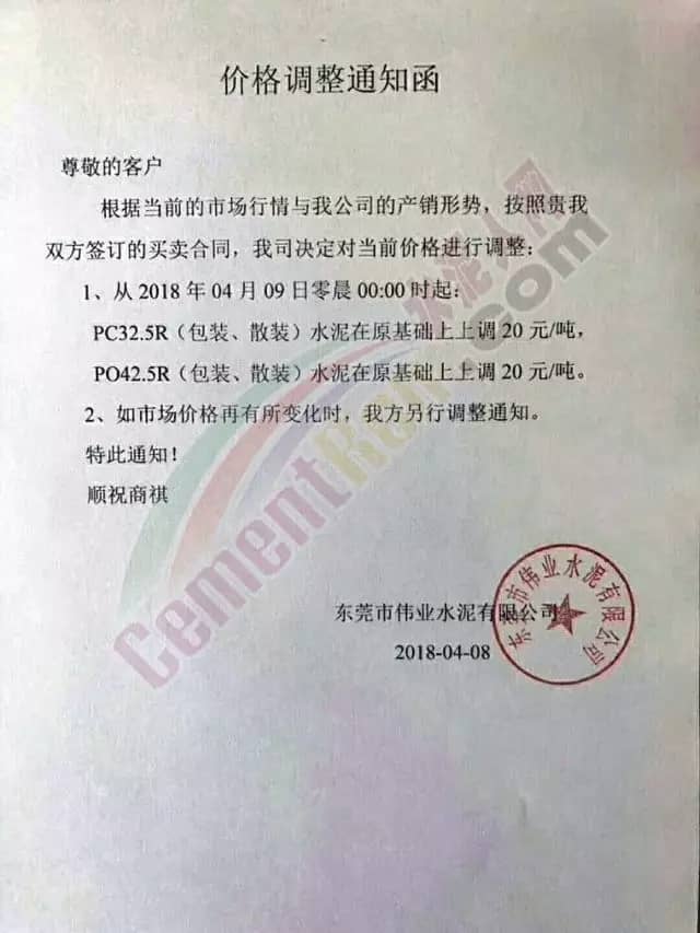 东莞伟业水泥调价函