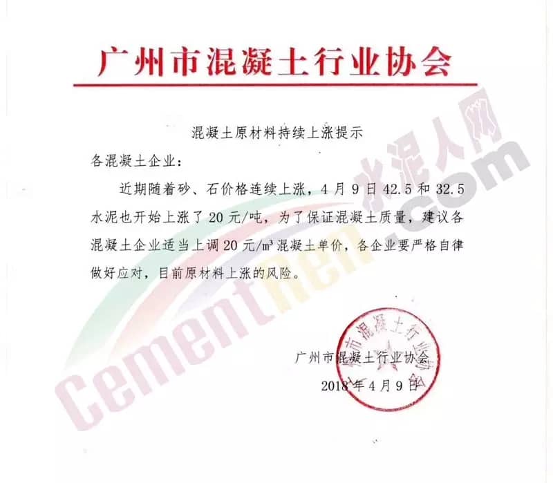 广州混凝土行业协会提价提示
