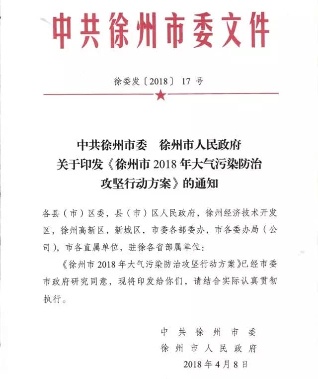 徐州市2018大气污染防治攻坚行动任务要求