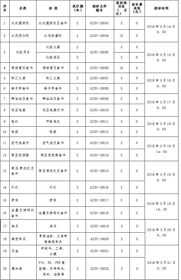 贵州西南水泥有限公司是西南水泥有限公司下属子公司,于2012年3月21日成立。贵州西南水拟定于2018年5月中旬对下属26家成员企业2018年度辅材备件进行集中招标,通过邀请招标(议价)选择资质合格、保供能力强、质量及技术服务均受控的供货单位。现将相关招标采购信息发布如下:
