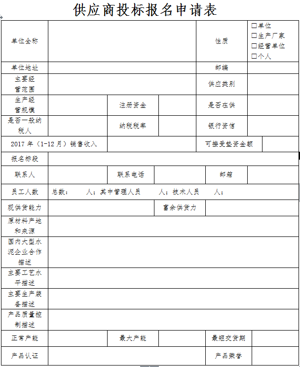 附件:贵州西南水泥2018年度辅材备件集中招(议)标公告(供应商投标报名申请表)