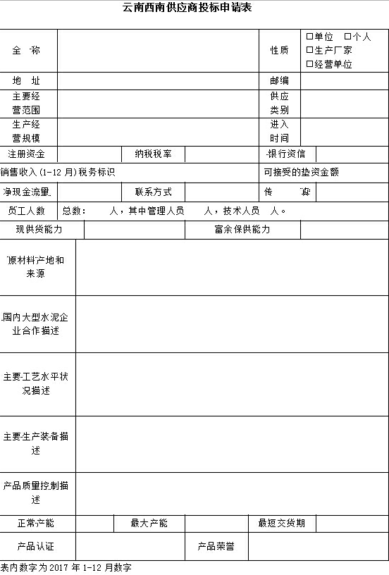 附件:云南西南供应商投标申请表