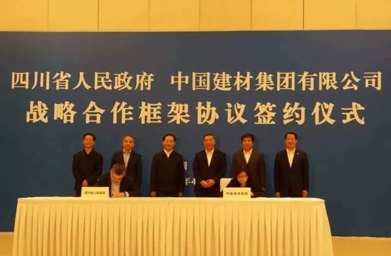 中国建材集团集团总会计师徐卫兵和四川省副省长朱鹤新代表双方签字。集团纪委书记杨杰,四川省委常委、成都市委书记范锐平出席仪式。