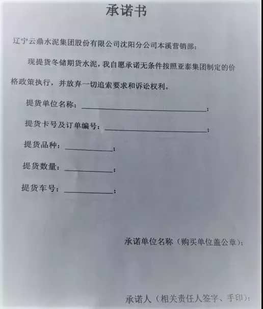 而且据爆料人表示,当时辽宁亚泰在进行收冬储水泥款项时,并没有与经销商签订协议或提供收据。虽然当时经销商们也存有疑虑,但考虑到和辽宁亚泰长期的合作关系,最终也都按此执行,只是大多把汇款凭证和与销售人员的联络记录作为依据存留。到2018年3月份,经销商们收到了辽宁亚泰发放的提货卡。