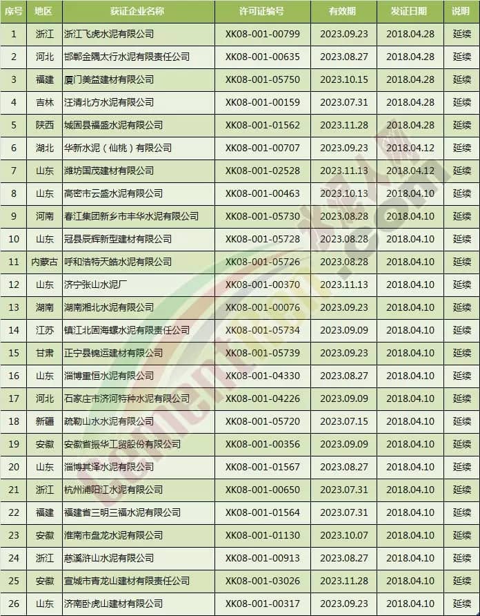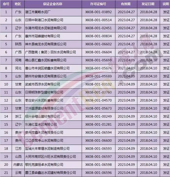 青岛即墨中联水泥有限公司在4月12日取得新发许可范围变更(增规格)后新证书。生产许可证明细为,
