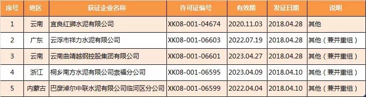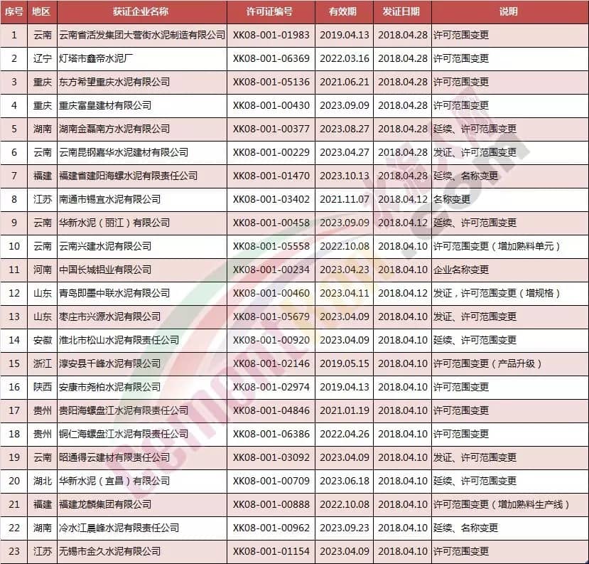 以上涉及项目变更及许可范围变更的企业中,新增熟料单元及熟料生产线的有两家企业,分别为云南兴建水泥有限公司、福建龙麟集团有限公司。其生产许可证详细如下:
