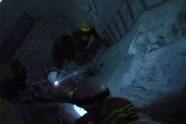 途中,经报警人了解,被困者当时正在5层楼高的水泥罐体中进行作业,不慎摔入罐底,情况十分紧急。
