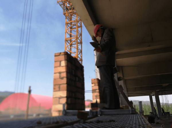 近日,记者在现场看到,几栋在建厂房已拔地而起,工人们正在紧张的忙活着砌墙、刮腻子等工作。工程总共要建造4栋楼,包括厂房、暂存库、办公楼和宿舍楼,目前厂房、水泥窑处置主体工程和设备购置已经完成,正在进行砌墙、粉刷等内部装饰装修工作。