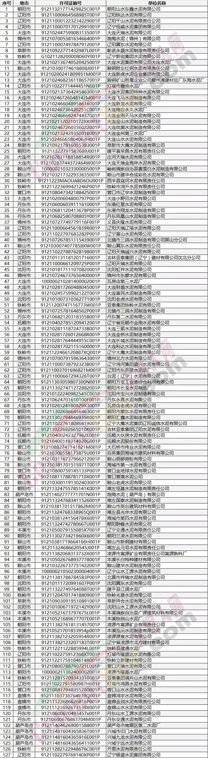 辽宁水泥企业名单