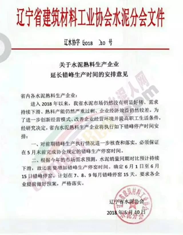 二、根据今年的市场需求预测,水泥销量同期对比预计持续下滑,故还需要增加错峰生产停窑时间。确定6月1日至6月15日错峰停窑,计划在7、8、9每月错峰15天。要求各企业提前做好预案,严格落实。