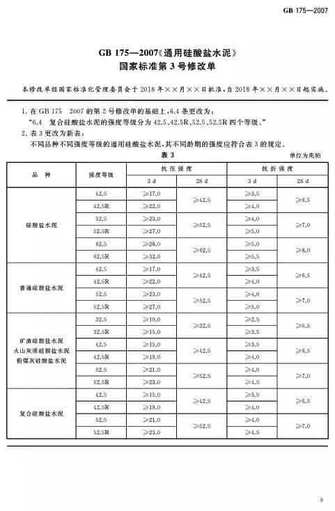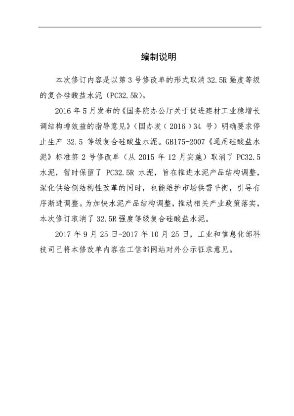 一、《通用硅酸盐水泥》强制性国家标准第3号修改单(报批稿)