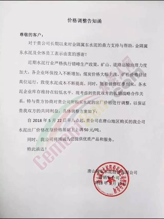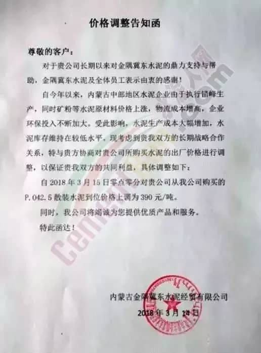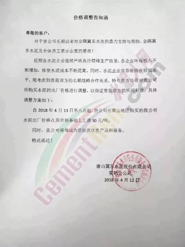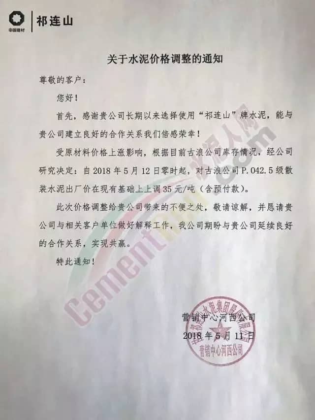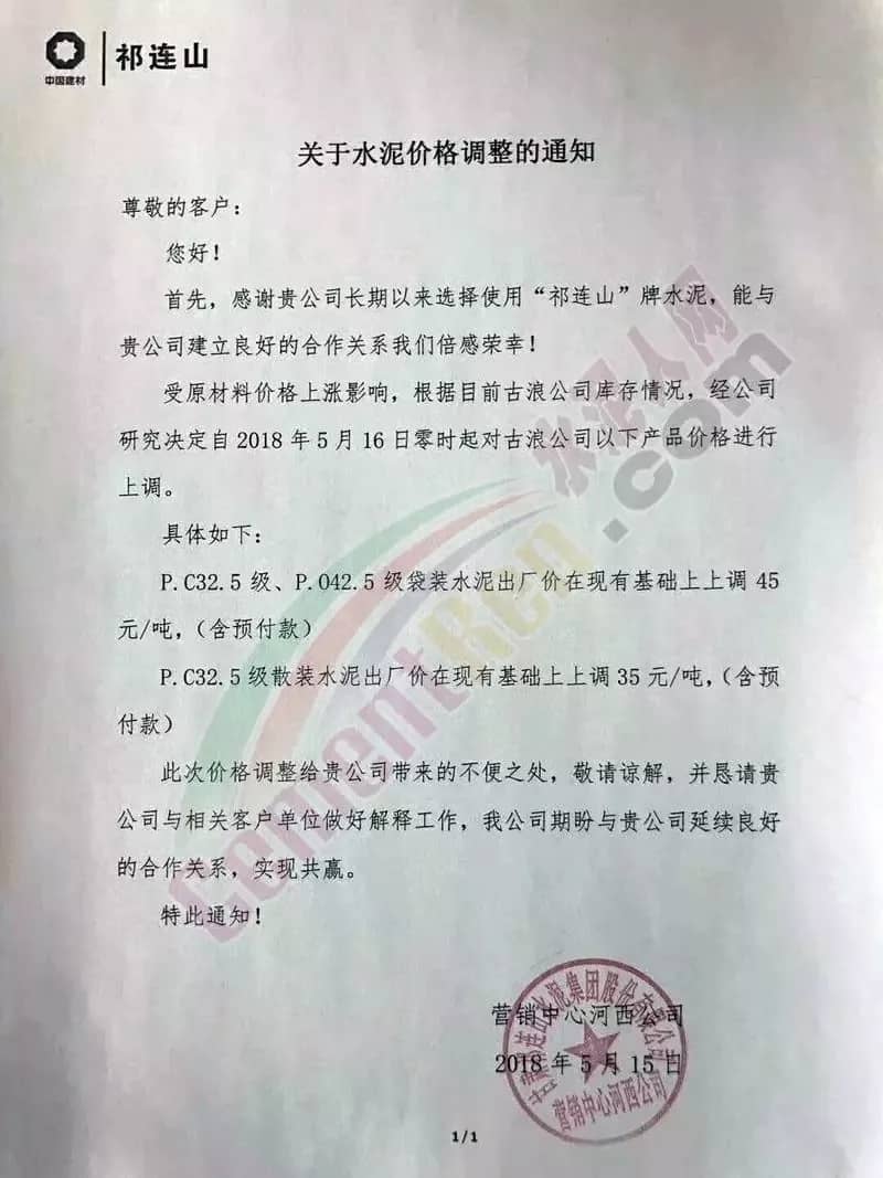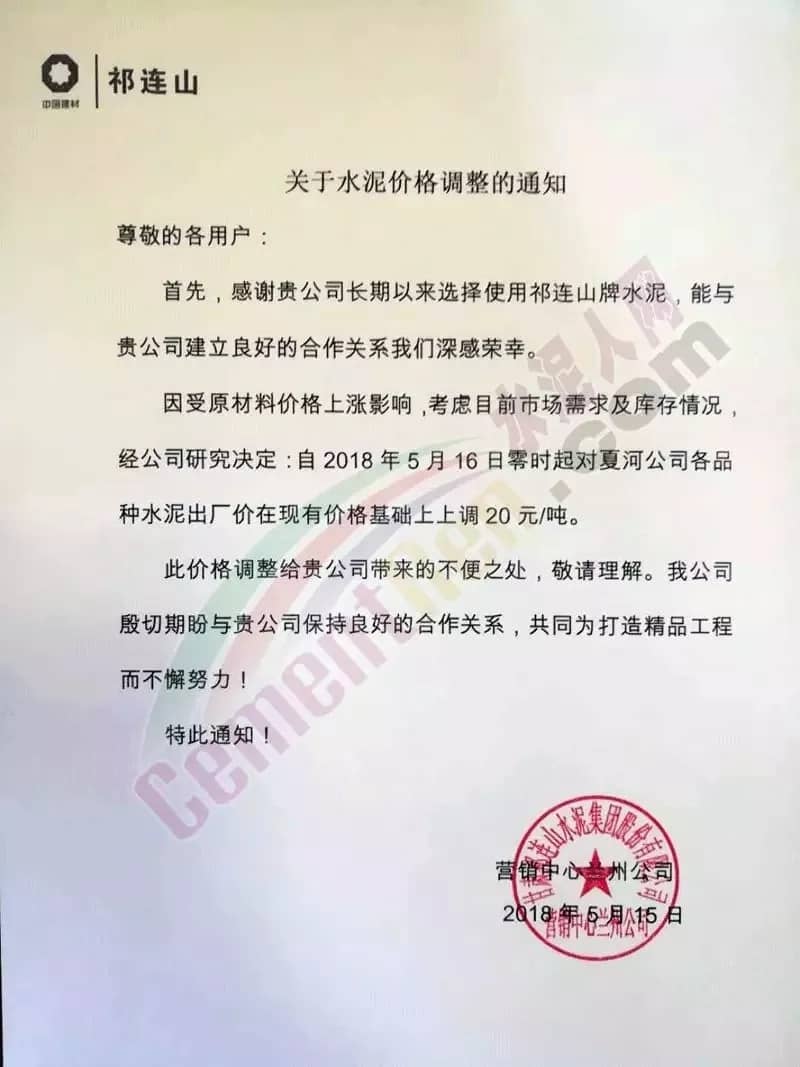近一周来各地水泥企业频发涨价通知,通知下游客户上调水泥价格。此前相关市场分析人士曾预测,2018年的水泥价格或将超越历史最高价。