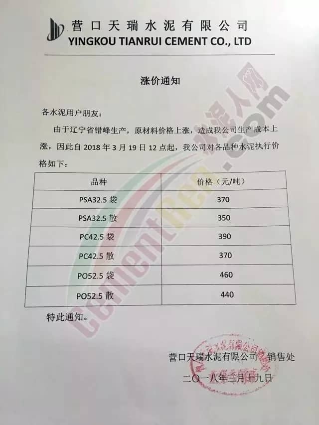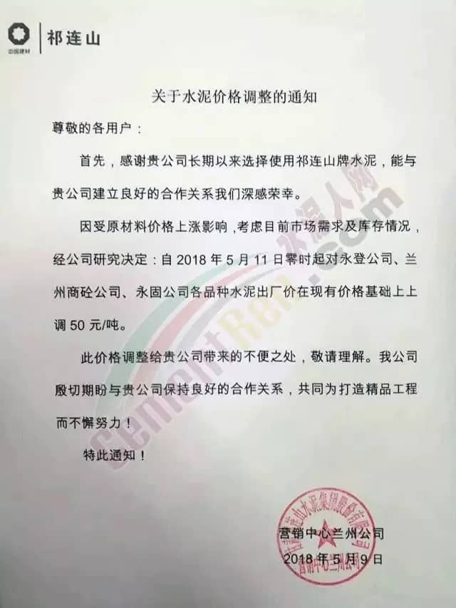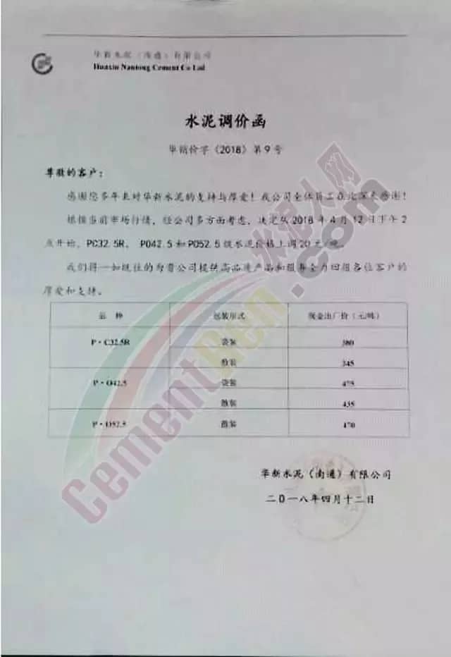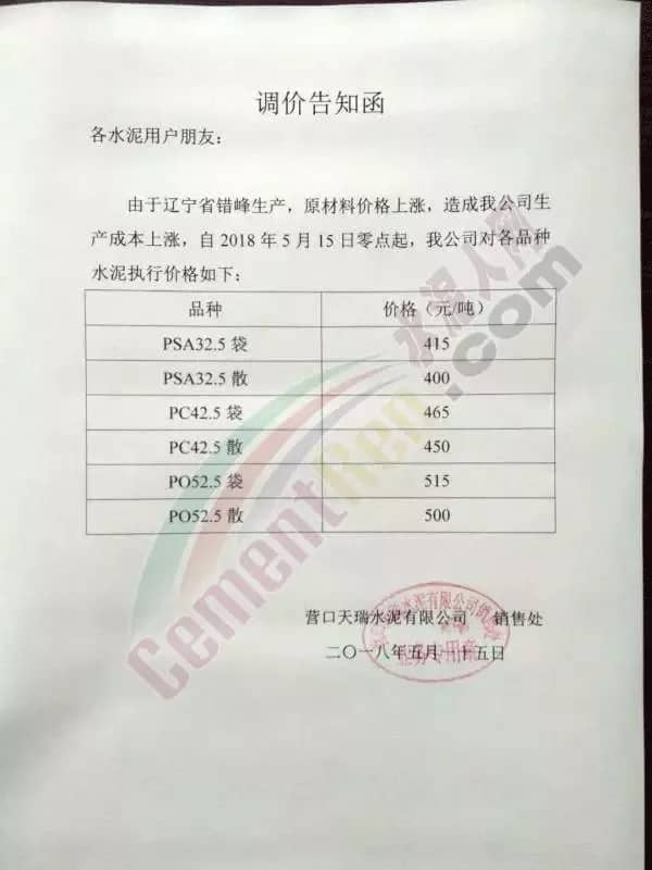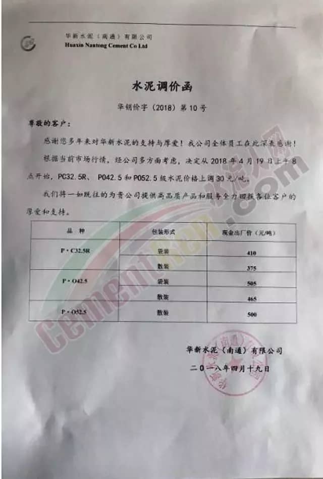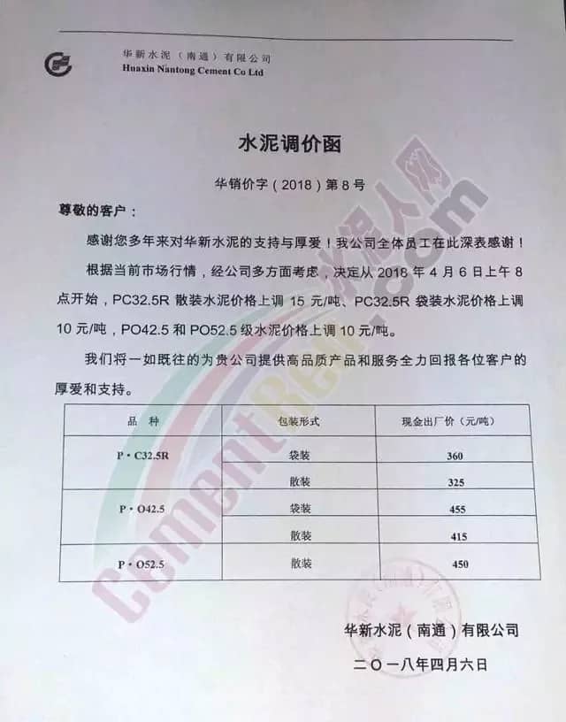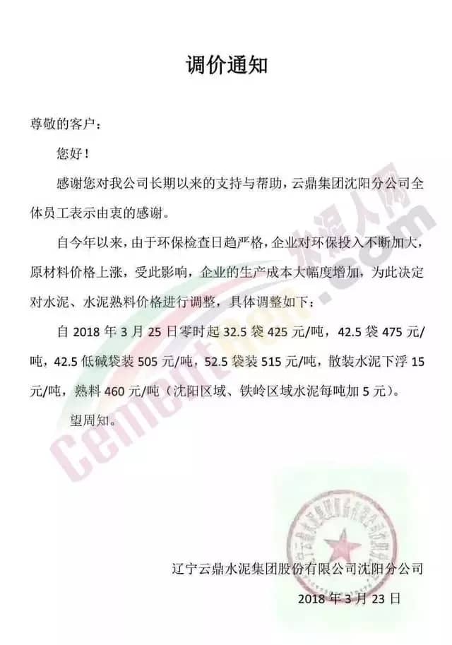 近一周来各地水泥企业频发涨价通知,通知下游客户上调水泥价格。此前相关市场分析人士曾预测,2018年的水泥价格或将超越历史最高价。