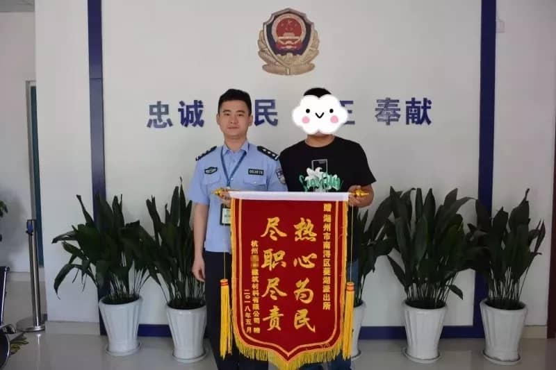 5月17日上午,杭州某建筑材料有限公司负责人殷先生来到菱湖派出所送上一面写有“热心为民、尽职尽责”的锦旗,感谢派出所民警李松良迅速破案,为其公司挽回重大损失。