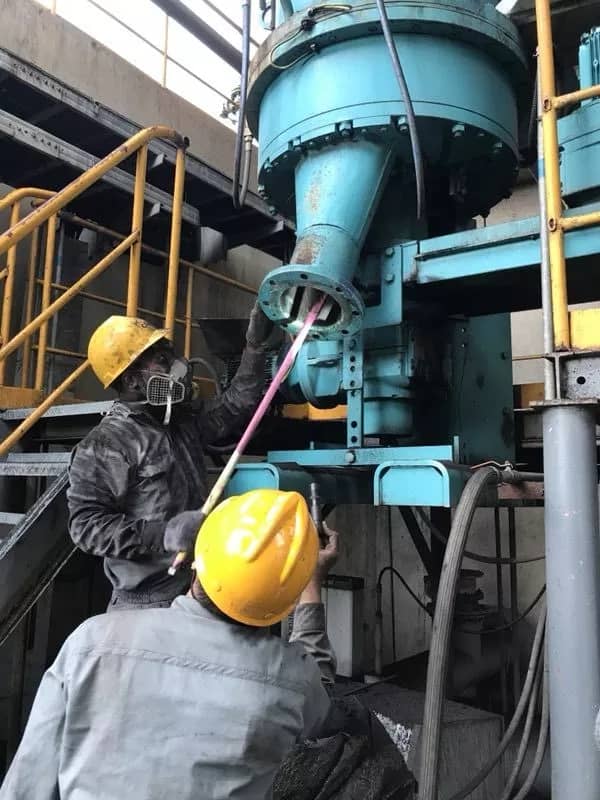 为在印尼传统斋月到来之前顺利完成各项检修任务,在中国师傅的指导下,印尼籍员工Adam正在独立处理煤粉喂料转子内部积料作业。