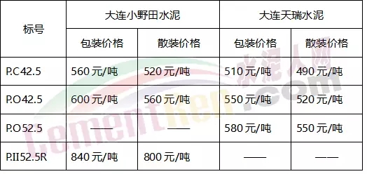 大连小野田水泥和大连天瑞水泥执行价格来看,同标号水泥差价在40-70元/吨。
