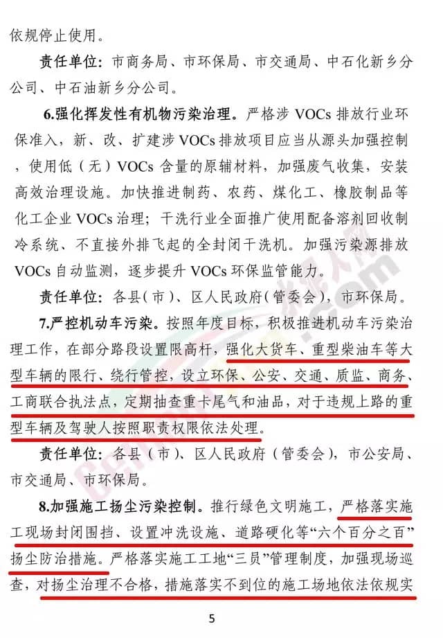 各县(市、区)人民政府、市人民政府有关部门要全面落实《新乡市人民政府办公室关于印发新乡市2018 年大气污染防治攻坚战实施方案的通知》《新乡市环境污染防治攻坚指挥部办公室关于印发新乡市2018 年大气污染防治攻坚战8个专项实施方案的通知》,深入开展扬尘污染专项整治行动和重型运输车辆污染防治“百日攻坚”行动,细化工作任务,提出具体清单,加快推进和完成一批大气污染防治重点治理工程。