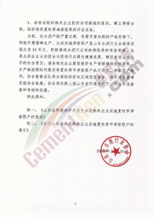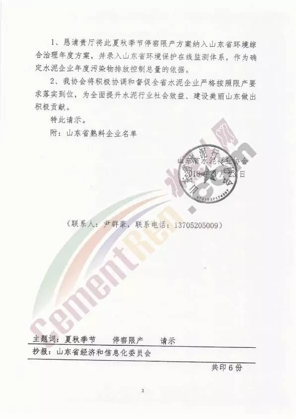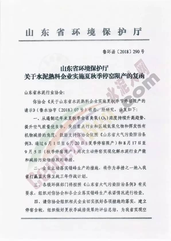 收到环保厅复函后,山东省水泥行业协会即向各熟料企业发布了通知文件。