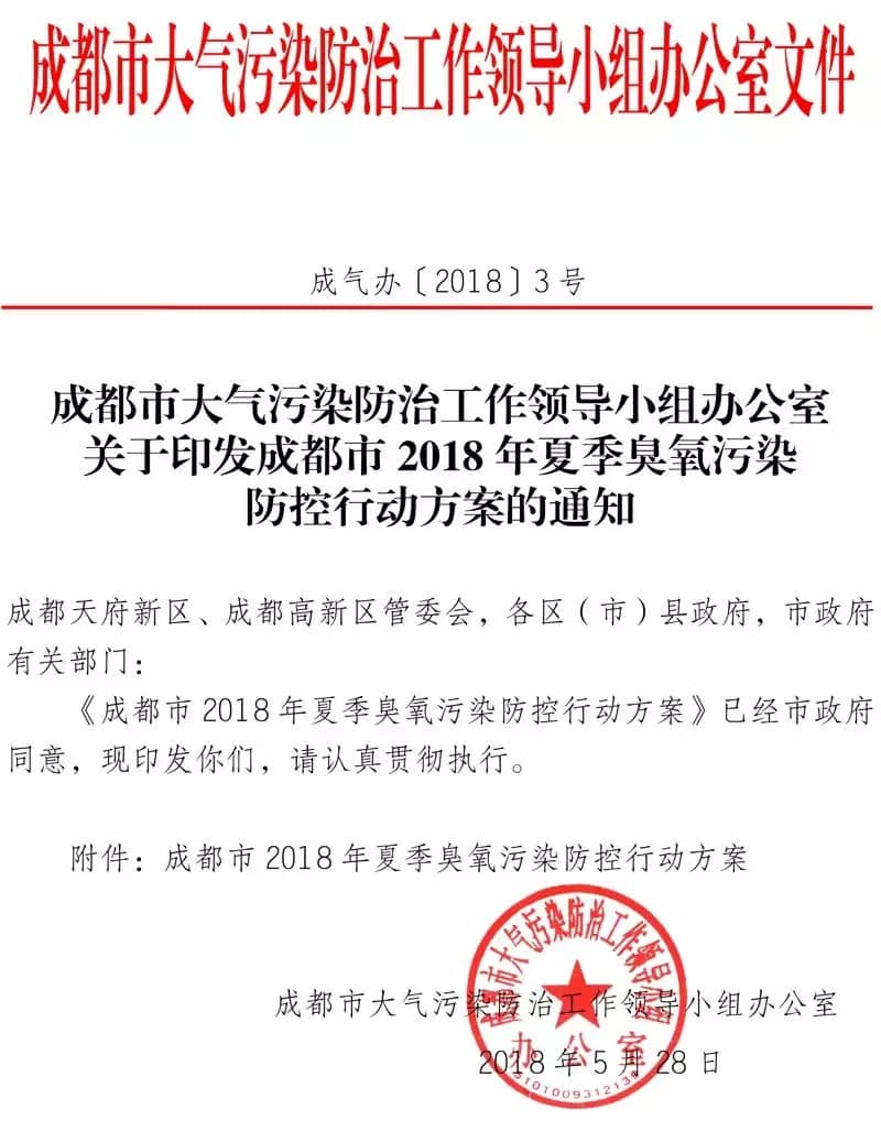 【水泥人网】日前,成都市印发《2018年夏季臭氧污染防控行动方案》。方案提出主要任务为强化工业源排放管控。其中提到加强对水泥生产行业污染物排放的监管,实现达标排放;对未实现达标排放的企业,依法实施限产或停产整治。