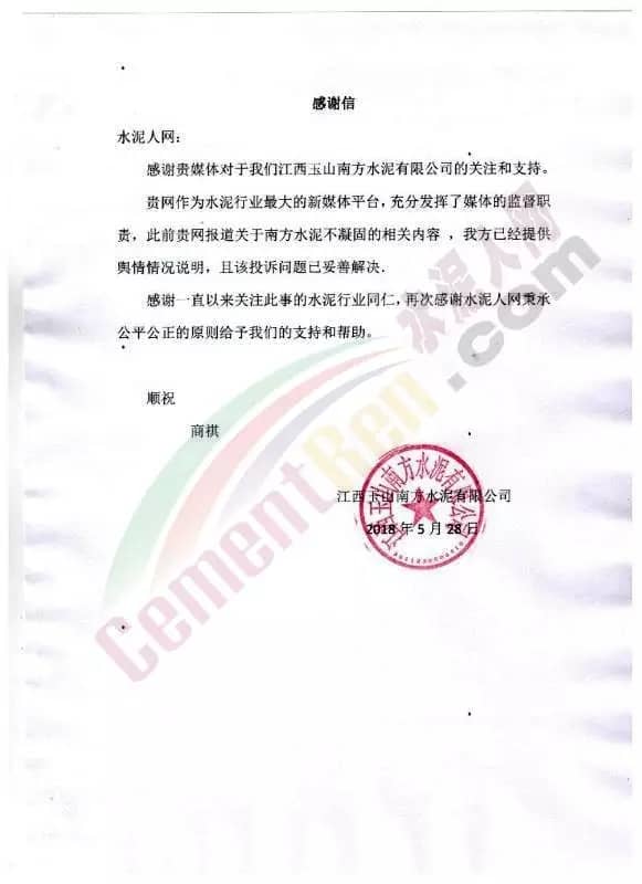 感谢贵单位编辑部对我司工作的监督与指导。贵单位作为水泥行业专业的权威机构,对水泥有关各方具有不可比拟的影响力与说服力。现就网上出现我司舆情的情况作如下说明,希望获得贵单位的理解和支持。