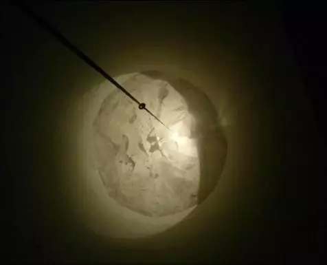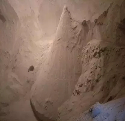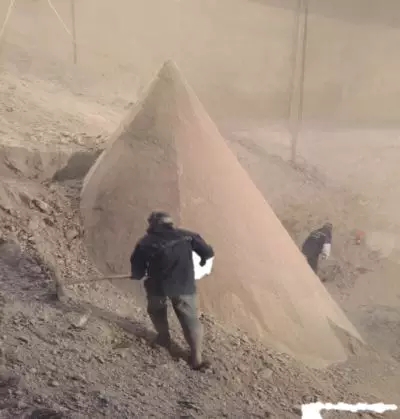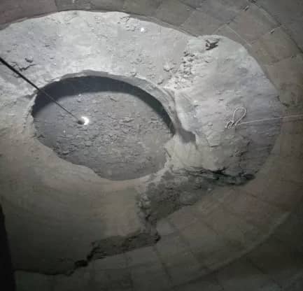2018年元月,彻底拆除原混凝土减压锥(如图五),改换为粉流掣的太极锥后,开始按5米料位2000吨水泥,9米料位4000吨水泥,直至满库1万吨水泥,逐步展开试机生产,结果完全达到预期目标(如图六);正常运行2月后,于3月又再次进行满库放空验证,事实证明(如图七)。粉流掣一直以自然整体流卸放,使环库壁硬料永远处于动态自动更新状态,而且巨大的料压作用于库壁的清理效果非常光滑干净,真正达到了边运行卸放边自动清库的理想状况。最后自然放空的尾料很少,空深达37米,四周自然堆积余料高度范围完全符合理论描述。