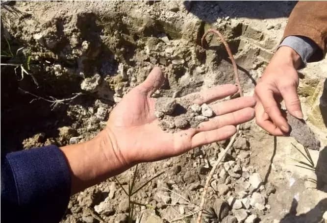 “我7月1日打桩,7日打好,8月2号就来试着挖下打得如何,结果一挖里面松松的,像这样,铲子一铲就掉落,我们就发觉水泥不好,就自己拿去检验,不要害人,要政府部门说合格才行,结果检验了不合格,强度三分之一还达不到。”
