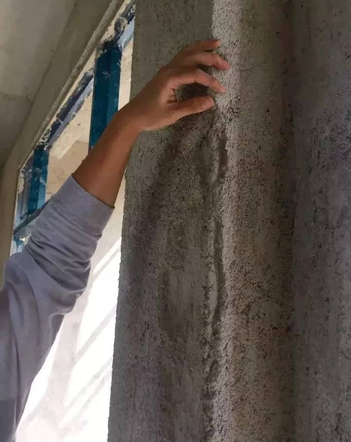“这些水泥都没凝固,用木头一刮就掉下来,有时用手一擦都掉下来。”