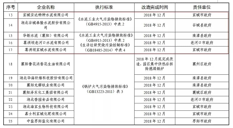 重点企业实施特别排放限值技术改造企业名单中包括多家水泥企业,改造执行标准为《水泥工业大气污染物排放标准》(GB4915-2013)中表2。改造完成时间为2018年12月。