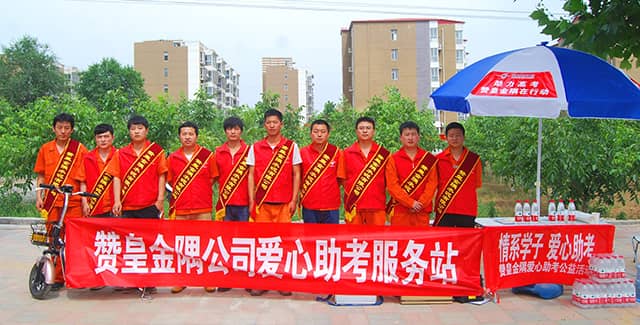 【水泥人网】火红的六月,飘香的季节,一年一度的高考再次来到,为了给考生加油,为高考助力,使广大考生以最佳的身心状态从容应对高考,考出理想成绩,赞皇金隅公司党委、团委于6月7日(高考第一天)组织党员、团员、青年志愿者在赞皇中学考场附近创建爱心服务站,为考生提供“爱心助考”、“交通引导”等志愿服务,为考生以及家长提供交通志愿服务、遮阳伞、板凳、免费饮用水等物品,另外准备应急车辆以备考生们的不时之需。