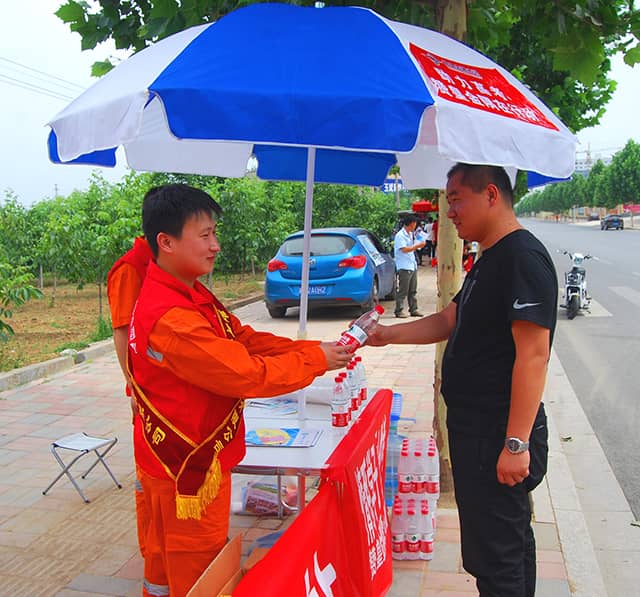 在每场考试之前和结束之后,赞皇金隅公司的志愿者为考生和家长送水。在考试的中间,志愿者们会邀请考生家长在服务站休息,并送上一瓶水,与家长们聊聊天,缓解一下家长们的紧张情绪。家长们说:“孩子在里面考,家长在外面考,心情更紧张,来你们这里坐一会儿,喝瓶水,再和你们聊聊,感觉放松了不少,真是太感谢赞皇金隅公司为考生和我们家长考虑的这么周到。”一声声问候,一面面笑脸,青年志愿者们热情周到的志愿服务,受到了广大青年学子和家长的认可和欢迎,大家纷纷为他们的乐于奉献的精神点赞。