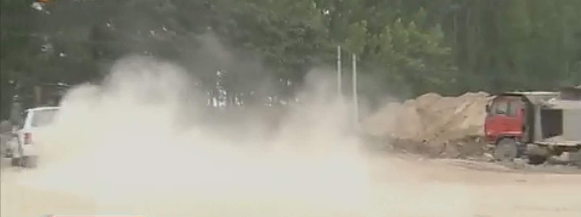 记者李文:“这是一家采石场,我们可以看到在没有生产的时候,地上的积尘非常地严重,在我身后是巨大的石块,经过碎石机,巨大石块将变成细小的碎石子,我们可以想象到,在生产的过程中,碎石机在没有任何封闭和抑尘处理的情况下,将会产生多么巨大的扬尘。”