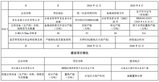 据查询,近期云南省经信委公示的水泥产能置换项目还包括《祥云建云水泥有限公司日产4800吨水泥熟料建设项目产能置换方案公示》,公示文件称:按照《国务院关于化解产能严重过剩矛盾的指导意见》(国发〔2013〕41号)、《工业和信息化部关于印发钢铁水泥玻璃行业产能置换实施办法的通知》(工信部原〔2017〕337号)要求,现将“祥云建云水泥有限公司日产4800吨水泥熟料建设项目产能置换方案”予以公示。
