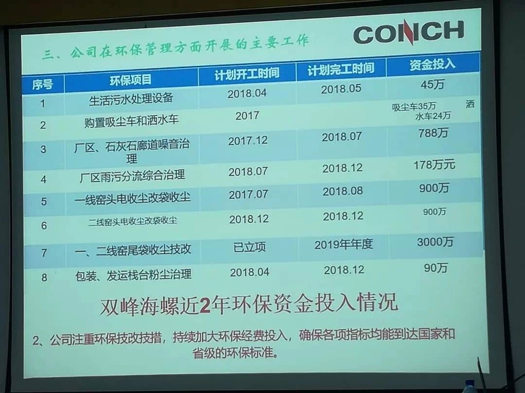双峰海螺近两年环保投入情况