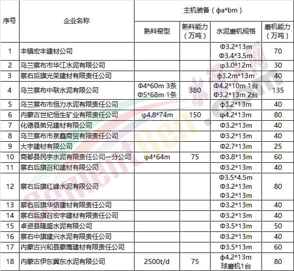 此前,内蒙古自治区政府公布的《内蒙古自治区水泥行业基本情况表》显示,乌兰察布市共有18家水泥企业,其中熟料生产线七条,熟料产能合计680万吨。