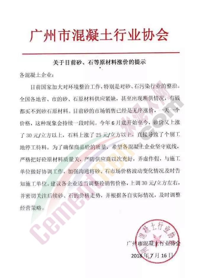 与此同时,广州、深圳混凝土协会相继发出提示函,提示会员企业为坚守质量底线,适当上调产品价格。