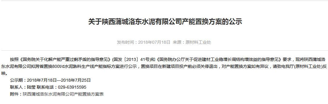 陕西蒲城洛东水泥有限公司产能置换方案
