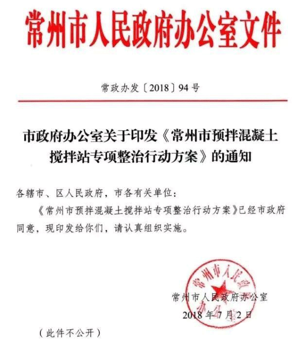 7月1日起到12月底,江苏常州市将依法对全市范围内预拌混凝土搅拌站开展专项整治行动,取缔一批不合法、不合规的预拌混凝土搅拌站。