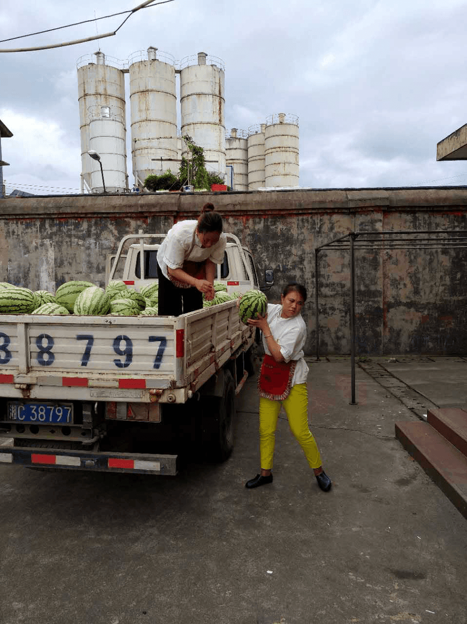 三、定时定点送凉茶、绿豆稀到现场,给员工分发西瓜