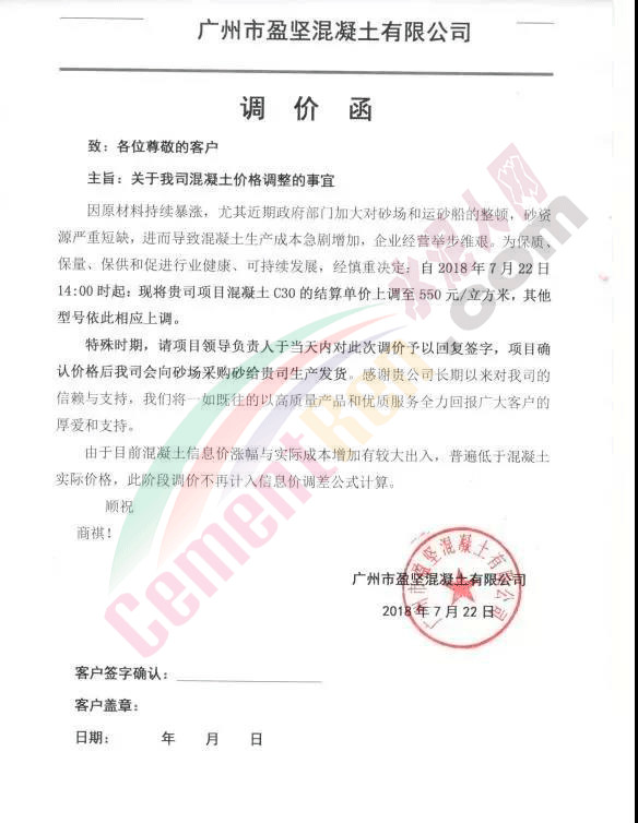 1、从2018年7月25日0点开始,全市所有混凝土企业所有标号的混凝土销售单价全部按照2018年第6期“深圳建设工程价格信息”公布的对应等级预拌混凝土和湿拌砂浆单价作为最低销售单价;
