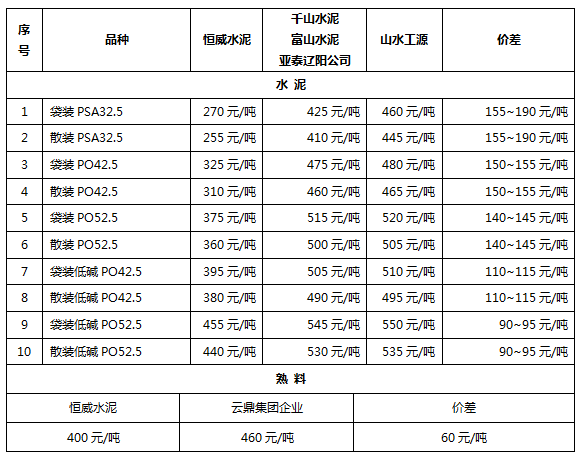 对比这家企业四月初发布的价格通知,部分标号水泥产品价格有小幅上调。相关分析人士称,近期,辽中地区价格较平稳,波动不大,恒威水泥上调水泥价格或为平衡供需。