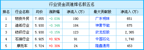 截至【10时27分】,行业五分钟资金流速排名如下:
