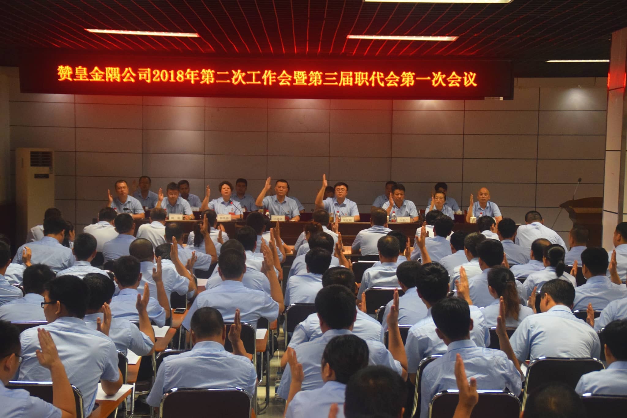 大会号召全体干部职工全体干部职工要转变观念,创新思维,在集团党委、董事会和金隅冀东水泥公司的坚强领导下,以更加饱满的热情、更加昂扬的斗志、更加务实的作风,朝着既定的目标,同心同德、同向同行,以更加开放的姿态,充满活力的状态,敢于创新的心态,为全面高质量完成全年各项工作任务和实现赞皇金隅领袖型企业奋斗目标做出新的更大贡献!