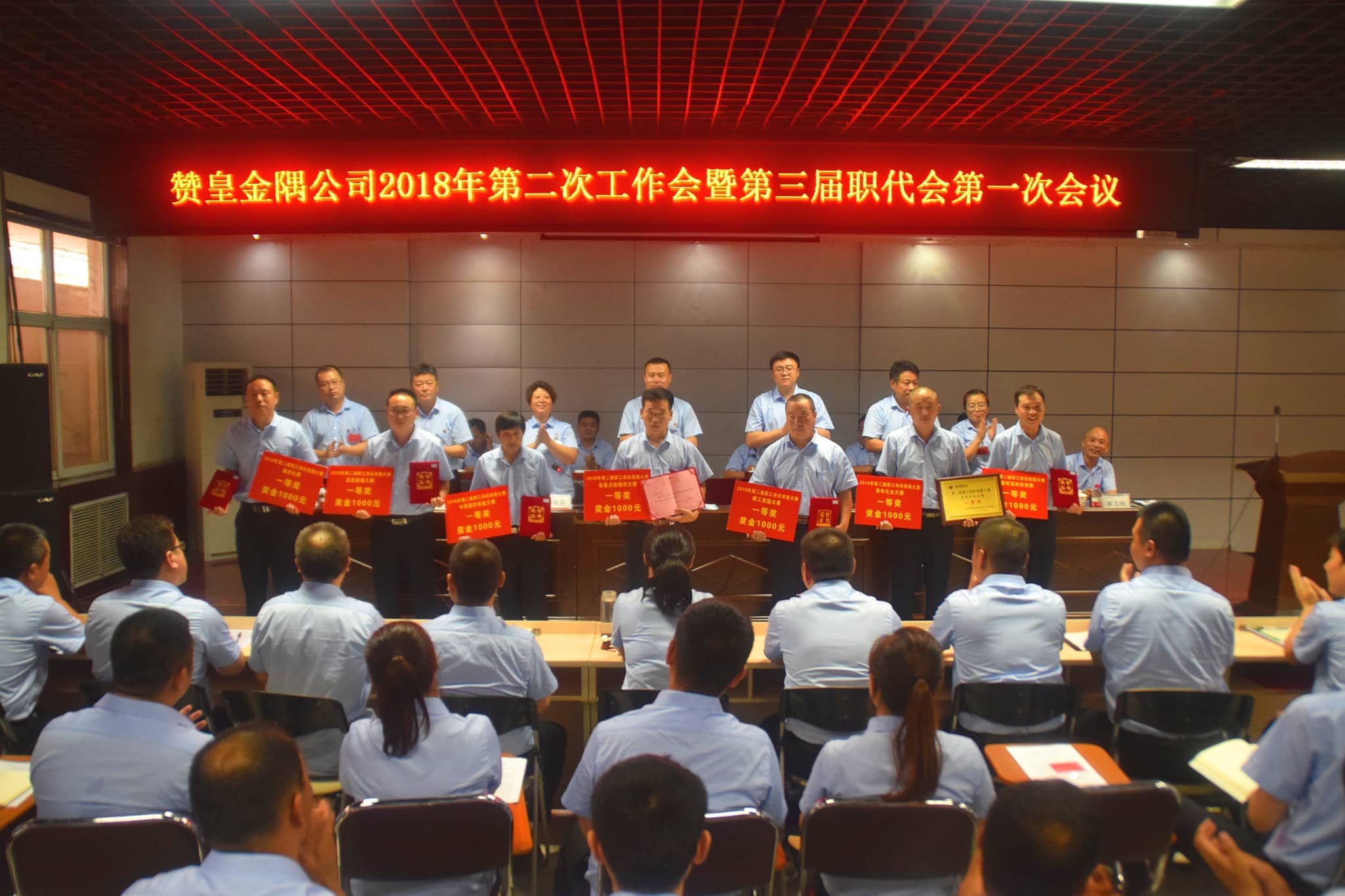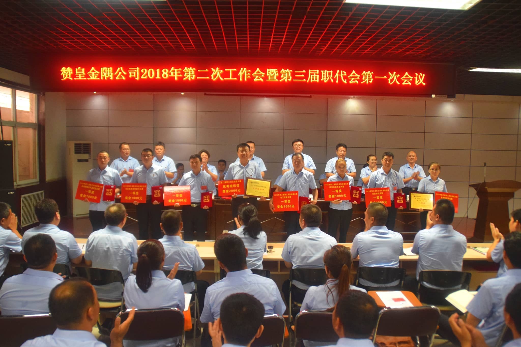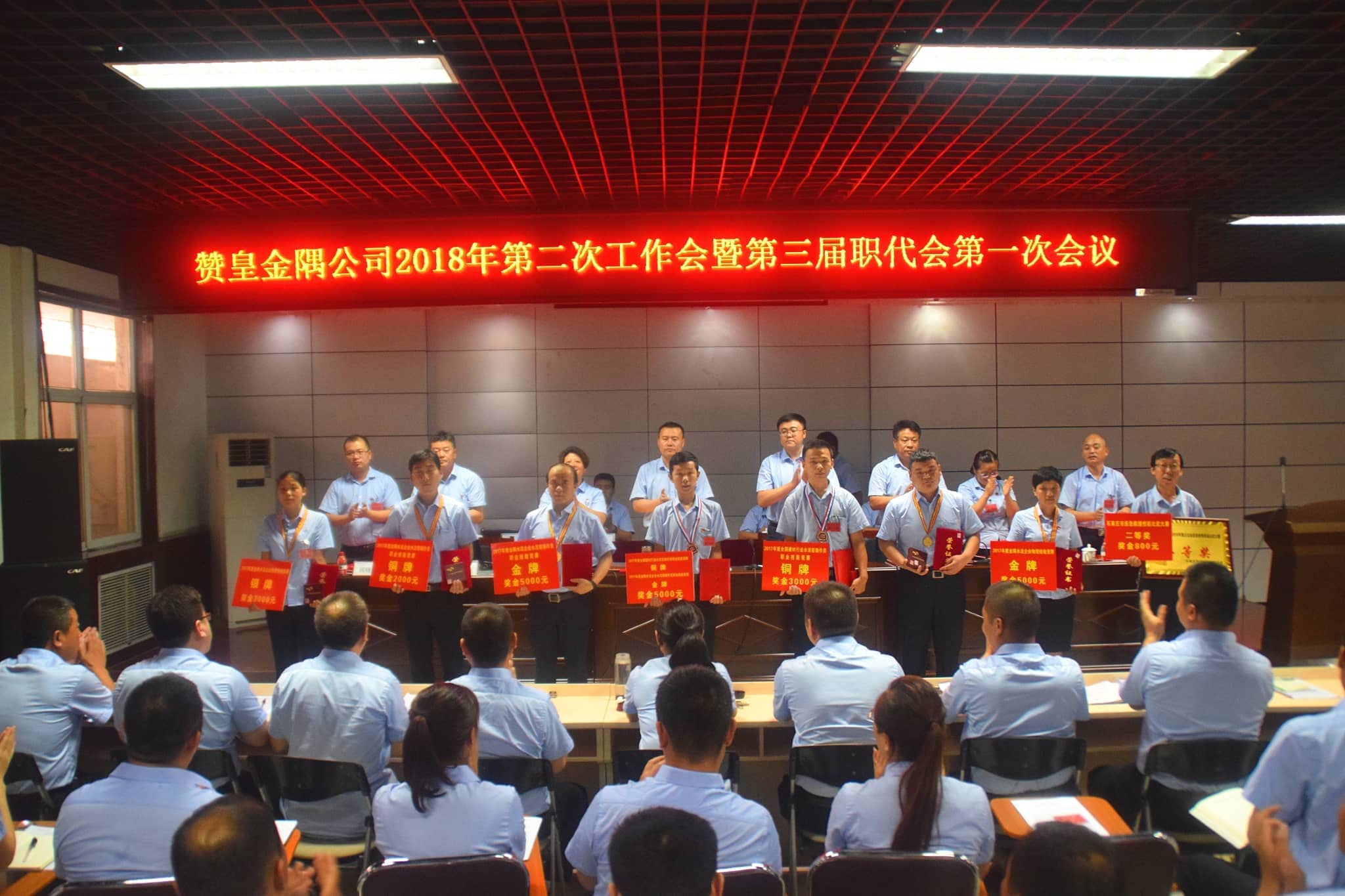 【水泥人网】8月5日,赞皇金隅公司召开2018年第二次工作会暨第三届职代会第一次会议,公司高管、职工代表、中层副职以上行政、技术干部、深州冀东公司领导及荣获公司第二届职工岗位技能大赛、2017年度全国建材行业水泥窑操作员职业技能竞赛、2017年度金隅水泥企业水泥窑操作员职业技能竞赛及物理检验竞赛先进代表共计120余人参加了会议。
