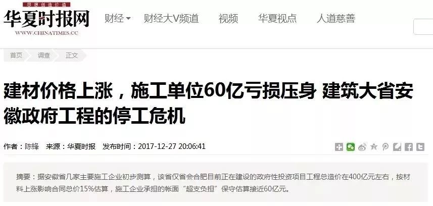 2017年12月27日,华夏时报一篇关于“建材价格上涨”的报道迅速传遍“工程圈”,一时间议论纷纷,有同情有指责,更多的是期待。