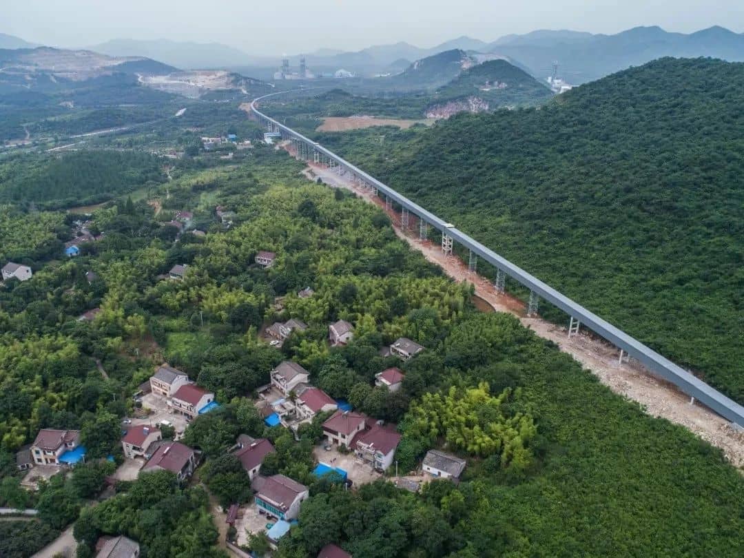 8月9日,在“中国小莱茵河”长湖申航道起点——长兴小浦,湖州南方物流码“空中运输走廊”输送带建成并正式试运行。