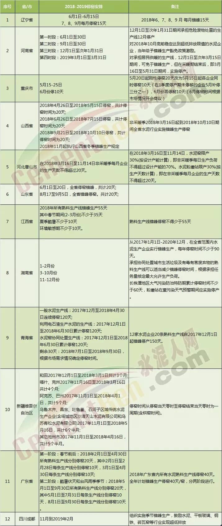 但是水泥行业却出现了截然不同的现象---错峰停产依赖症,全国各地的错峰停产轰轰烈烈,有种变本加厉的态势,进入9月雾霾或将再度来袭,10月1日开始北方的秋冬季错峰停产,再加上此前各区域发布的2018-2019年错峰生产计划,大半个中国的水泥厂将进入“停产季”。