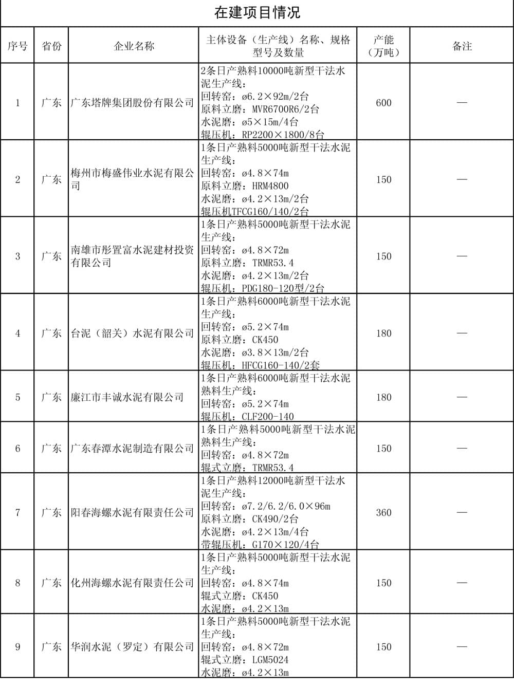据了解,这家企业是位于广东省阳春市潭水镇马头山的广东春潭水泥制造有限公司。早在2015年四月广东省就公布了水泥行业9个在建项目产能置换方案,共涉及产能置换2070万吨。九个在建项目产能置换单位名单中就包括这家企业。