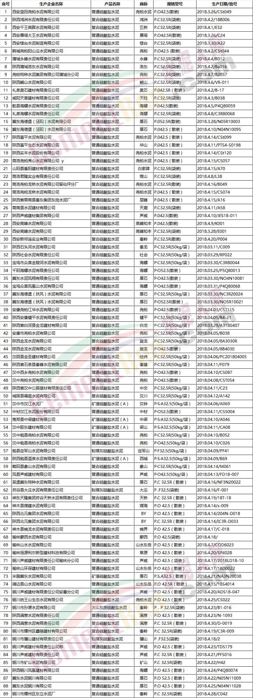 陕西省质量技术监督局分别就2018年第2批水泥产品质量省级监督抽查结果和2018年第2批硅盐酸水泥熟料产品质量省级监督抽查结果进行了公告。公告详情如下: